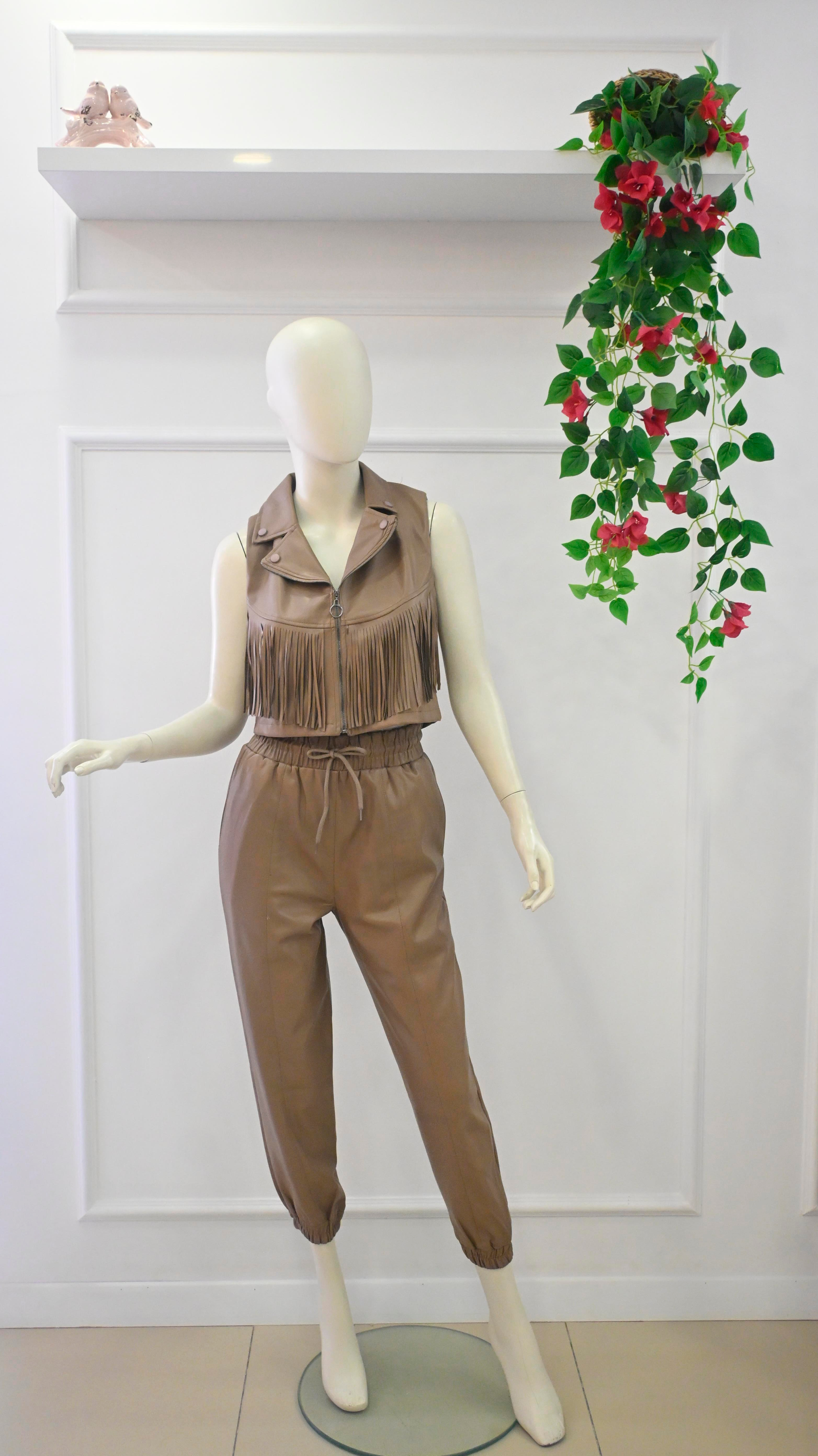 Paçası Lastikli Deri Pntolon
